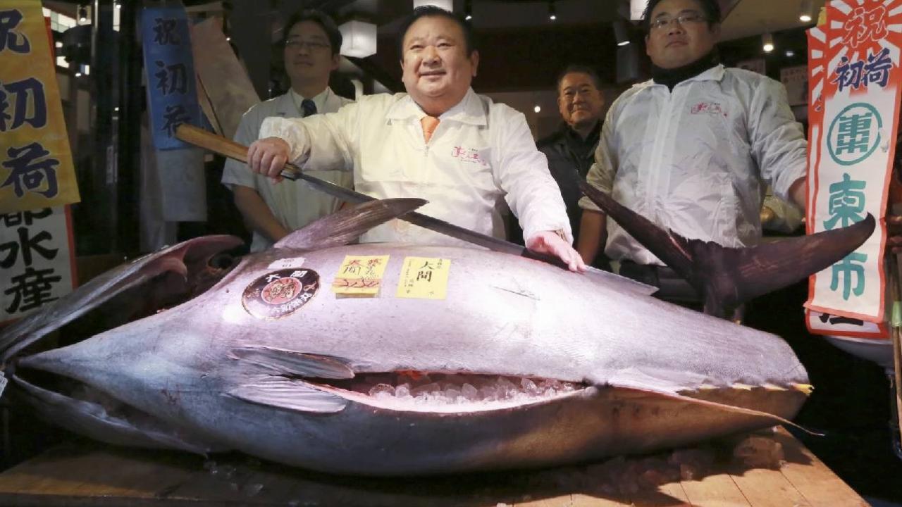 Japonya’nın Aomori bölgesindeki Oma açıklarında avlanan dev ton balığı, Tokyo balık pazarında görücüye çıktı. 243 kilogramlık bu dev ise, kübit bir satışa konu oldu ve 5 Ocak’ta yapılan açık artırmada 510,3 milyon yenlik teklifiyle en yüksek pulu veren taraf oldu.