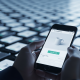 A hand typing furiously on a laptop keyboard, but the screen is entirely black, reflecting only the dim light of the room, symbolizing the futility or lack of true connection/impact of the digital action.